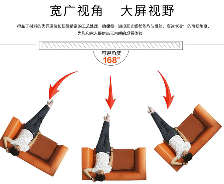 可视角度之间的关系是相对的,越小,可视度越大。相反,越大,可视度越小。例如:1.0可以在所有方向上均匀地反射,并且可以从不同角度观看获得同样的光强度值。而高的只会向轴向区域集中反射,偏离了这个区域,光强度值会急速下降。 当输出的亮度不能满足大的观看要求时,或者在观看3D投影时,需要使用较大的输出亮度。 此时,只能牺牲一部分可见范围,而对于超高的一部分,图像的中间通常是明亮的,四角为黑暗的现象。 然而,尽管较高的幕布在可视范围内受到限制,但它具有抑制投影画面上环境光产生的不良影响。